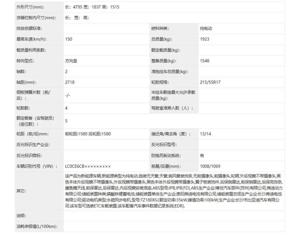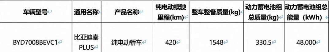 动力配置方面,根据申报信息显示,新款比亚迪秦PLUS EV车型搭载最大功率为100千瓦时的驱动电机,将提供容量为48千瓦时、57.6千瓦时电池组,续航里程420km和510km两种版本。